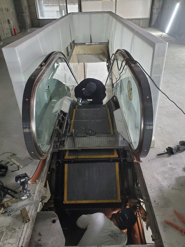 内装解体をお願いした業者は、エスカレーターの解体はできないので探し回った。現場が遠いこともあって先が見通せない状況でした。