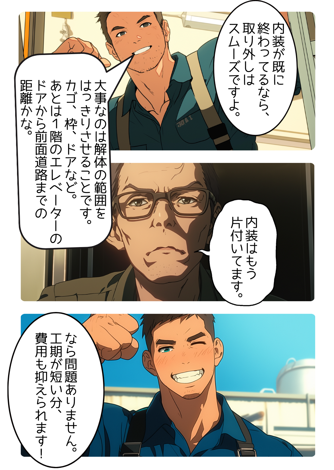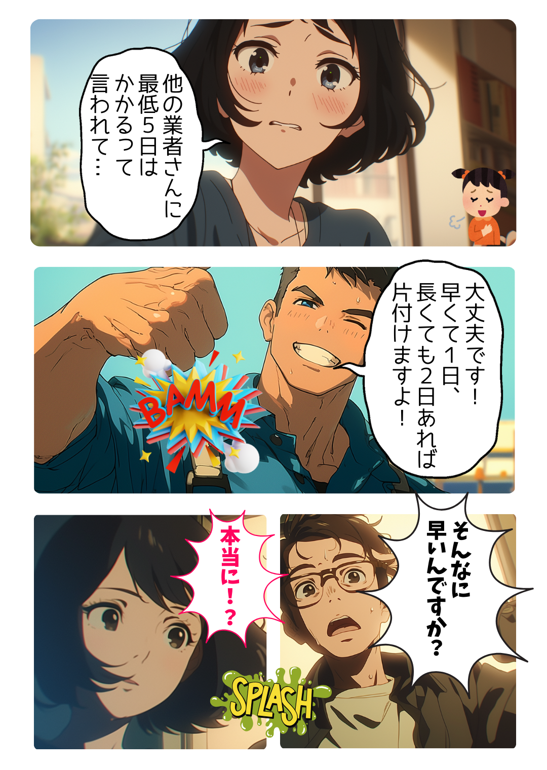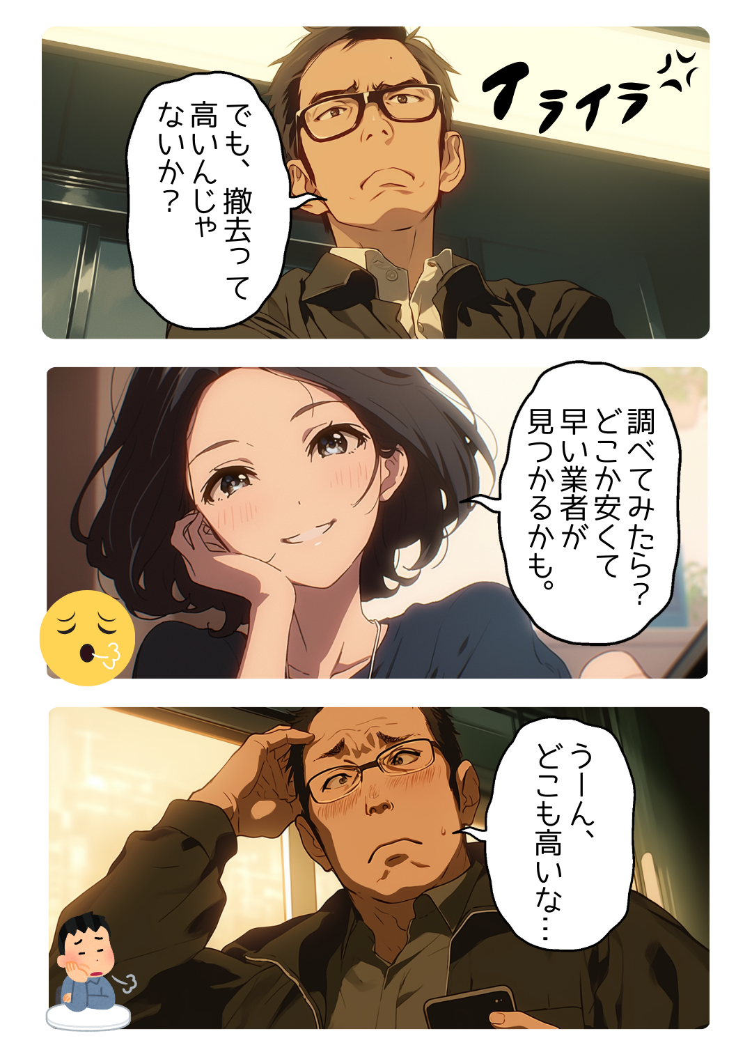 ただ、今までの見積額とあまりにも違うので、追加料金の発生や安全性について逆に不安になったものです。