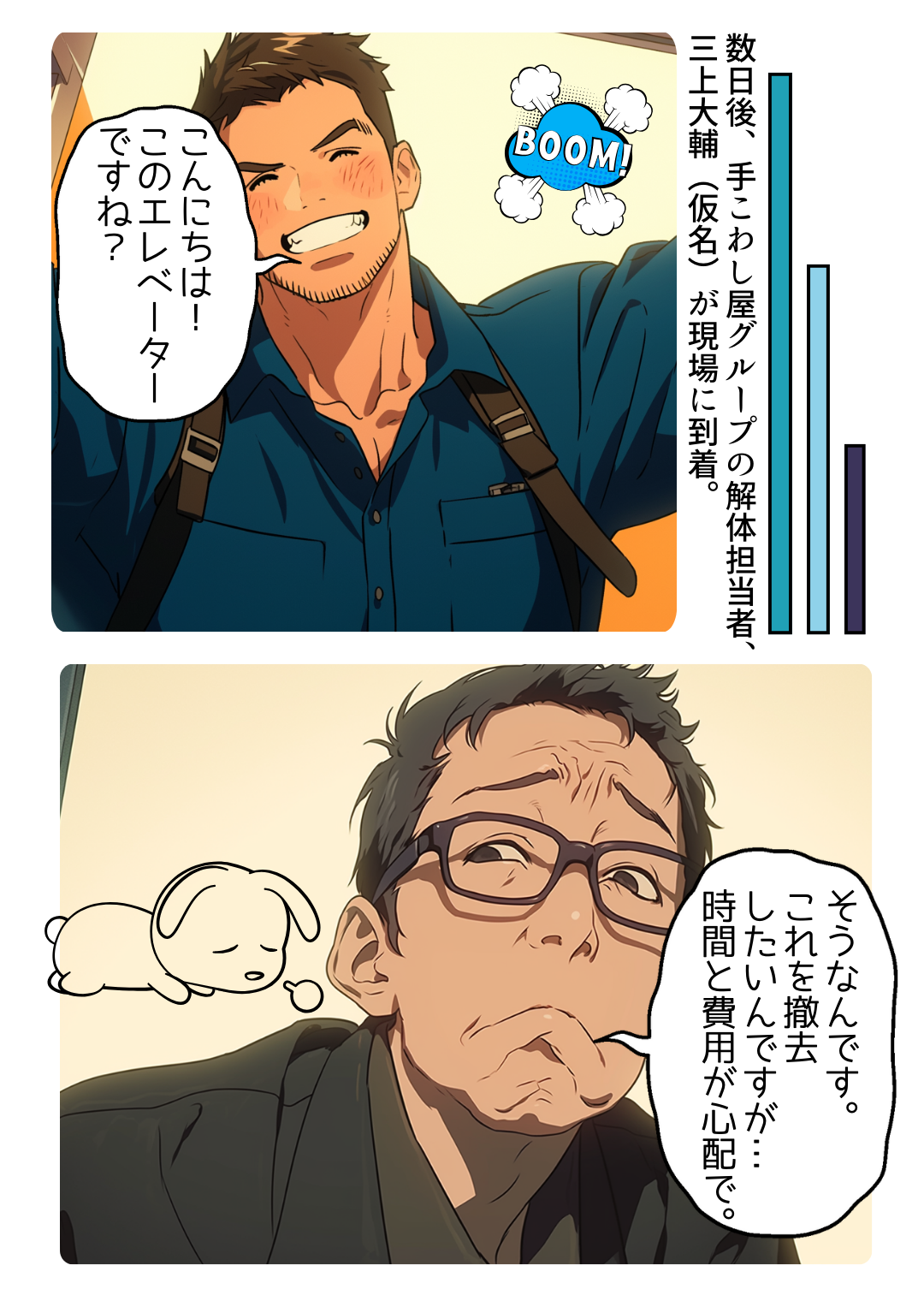 同業者や知り合いでエレベーター撤去に困っている方がいたら、是非ご紹介させていただきます。ありがとうございました。
