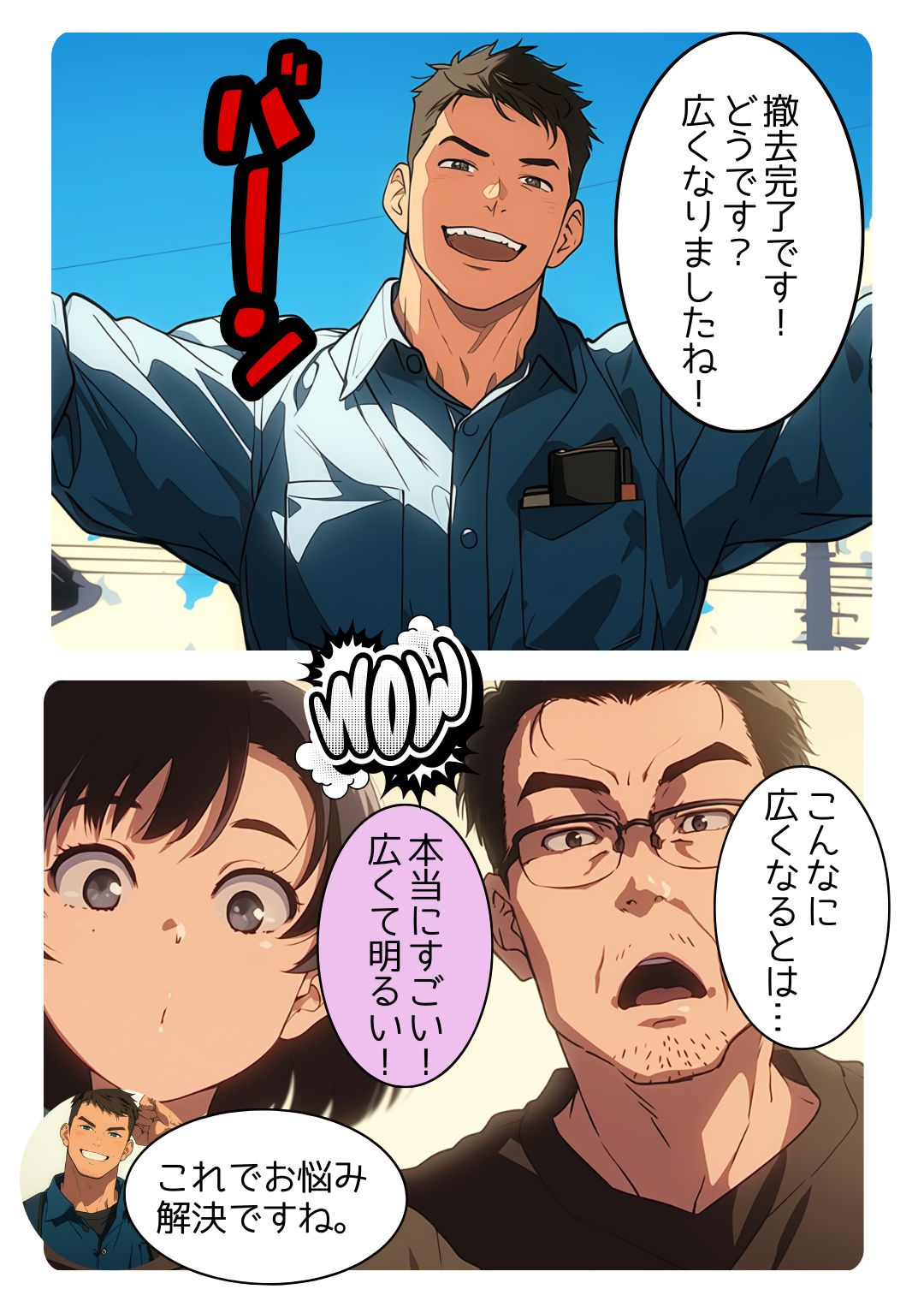 解体業者さんも親切丁寧で仕事もテキパキとしていて、見ていてとても気持ちよかったです。